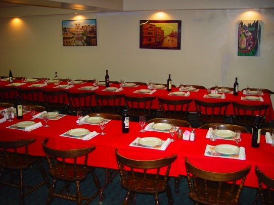 Our banquet room accomodates up to 60 people, perfect for your family gathering (birthdays, anniversary, wedding rehearsal, etc.), sports banquet or business function.